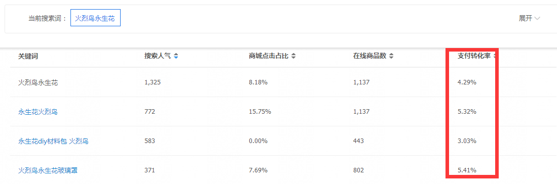 火烈鸟永生花行业平均转化率4%左右,也就是说想要产生一个订单至少需要25个访客,但是新链接由于销量、评价、买家秀等都没有或者比较少,转化率就会更低一些。假如只有1%的转化,就意味着至少需要100个访客才能产生一个订单。 而想要产生持续的转化 ,每天都有订单,就要保证我们每天都有稳定或者不断增长的访客数量才可能产生更多的订单,同时当我们数据表现好的时候就有机会获得手淘首页推荐流量。