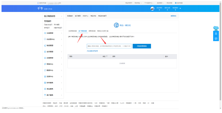 单品排查跟全店排查类似,从图上所示位置,我们把要检查的产品的ID号输入进去以后,我们就可以针对我们要排查的单品来进行自检