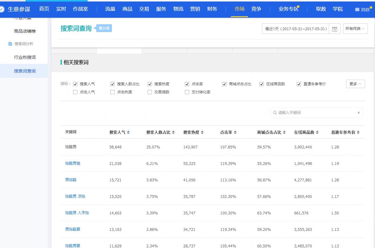 生意参谋的引流关键词,大家可以看到日常哪一些关键词给咱们带来流量,多去关注。另外市场行情里面如果没有订购的朋友们,可以找认识的朋友帮助大家搜索并整理下关键词表格。