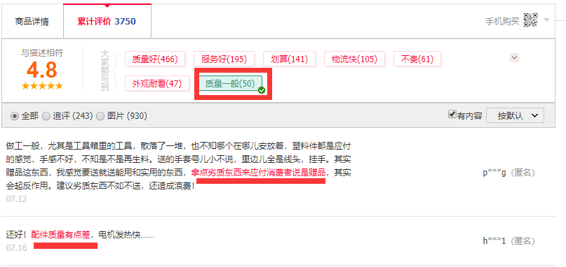 评论区买家对产品有意见,多人说产品质量存在问题,一人说有,是差评,多人说有,就要考虑事情是如何的。接受程度高的买家,可以忽略,但是对于有选择困难症的买家,这样的点,是他们没法接受的。